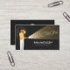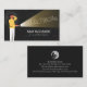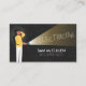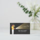 La tarjeta de negocios Electrician Electrical Contractor presenta a un personaje de dibujos animados sosteniendo una antorcha en la oscuridad. Perfecto para electricidad, electricidad, contratista eléctrico, electricidad, contratista, artesano, reparación de casas, reparación de casas.