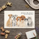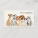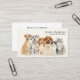 Tarjeta de presentación de cuidador de mascotas y paseador de perros con acuarela Esta encantadora tarjeta de presentación de cuidador de mascotas y paseador de perros con acuarela presenta una ilustración amistosa de varias mascotas queridas pintadas en un suave estilo de acuarela. El diseño incluye una variedad de animales que a menudo cuidan los cuidadores de mascotas, como un perro sabueso, dálmata, beagle, caniche y junto con tres adorables gatos: un gato negro y blanco, un gato persa y un gato ragdoll.