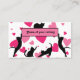 "Muestra tu amor por los amigos felinos con nuestra encantadora tarjeta de presentación de cacería. Con un bonito patrón de corazones rosas y adornado con una elegante silueta de gato negro, esta carta es la manera perfecta de captar la atención y transmitir tu pasión por los gatos".