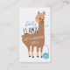 Llama divertida con el pelo hinchado y la bola de hilo en esta tarjeta de visita para tejer, artesanía de crochet o vendedor de hilos caseros.