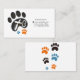 Huella animal y tijeras con un peine. Tarjeta de visita de cuidado de mascotas