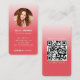 Las tarjetas de visita con tu foto y código QR son una excelente manera de destacar de la competencia y hacer una impresión duradera en potenciales clientes y clientes. Con una foto, puedes ponerle cara a tu nombre y hacerte más memorable. Se puede usar un código QR para enlazar a tu sitio web, perfiles de medios sociales u otro contenido en línea. Esto facilita que la gente aprenda más sobre usted y su negocio. Las tarjetas de visita con código QR y foto también son una excelente manera de obtener pistas. Cuando alguien escanea su código QR, se le llevará a una página de inicio donde podrá inscribirse en su lista de correo electrónico o obtener más información sobre sus productos o servicios. Esto puede ayudarle a hacer crecer su negocio y a llegar a nuevos clientes. Si está buscando una manera de hacer más efectivas sus tarjetas de visita, considere añadir una foto y un código QR. Es un simple cambio que puede marcar una gran diferencia. A continuación se presentan algunas de las ventajas de utilizar tarjetas de visita con código QR y foto: Destacar de la competencia Hacer una impresión duradera Recabar liderazgos Crecer tu negocio Llegar a nuevos clientes Si estás listo para llevar tu negocio al siguiente nivel, pide hoy mismo tus tarjetas de visita con código QR y foto. Por favor, no dude en ponerse en contacto conmigo si necesita algún cambio en el diseño o necesita elementos coincidentes.