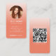 Las tarjetas de visita con tu foto y código QR son una excelente manera de destacar de la competencia y hacer una impresión duradera en potenciales clientes y clientes. Con una foto, puedes ponerle cara a tu nombre y hacerte más memorable. Se puede usar un código QR para enlazar a tu sitio web, perfiles de medios sociales u otro contenido en línea. Esto facilita que la gente aprenda más sobre usted y su negocio. Las tarjetas de visita con código QR y foto también son una excelente manera de obtener pistas. Cuando alguien escanea su código QR, se le llevará a una página de inicio donde podrá inscribirse en su lista de correo electrónico o obtener más información sobre sus productos o servicios. Esto puede ayudarle a hacer crecer su negocio y a llegar a nuevos clientes. Si está buscando una manera de hacer más efectivas sus tarjetas de visita, considere añadir una foto y un código QR. Es un simple cambio que puede marcar una gran diferencia. A continuación se presentan algunas de las ventajas de utilizar tarjetas de visita con código QR y foto: Destacar de la competencia Hacer una impresión duradera Recabar liderazgos Crecer tu negocio Llegar a nuevos clientes Si estás listo para llevar tu negocio al siguiente nivel, pide hoy mismo tus tarjetas de visita con código QR y foto. Por favor, no dude en ponerse en contacto conmigo si necesita algún cambio en el diseño o necesita elementos coincidentes.