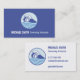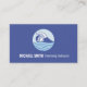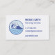 Una tarjeta de visita con el logotipo de una línea azul-moderna de arte de un nadador con googles y gorra de baño nadando entre las olas. Perfecto para los animadores y salvavidas. Personalice fácilmente la información en las plantillas de texto proporcionadas.