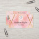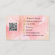 Plantilla moderna de tarjeta de visita con fondo rosa suave con acentos de oro falsos y un diseño de código QR en el lado posterior. Añade tu logotipo, nombre, título, número de teléfono, correo electrónico y medios sociales. Ideal para salones, boutiques o emprendedores que buscan una marca elegante y femenina. Atención: el purpurina y el Relieve metalizado de oro están impresos digitalmente, no metálicos ni texturados.