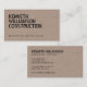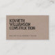 Su nombre o nombre de negocio se muestra en un tipo de letra negrita, de estilo esténcil, en un fondo oscuro de tablero de partículas de color marrón para esta plantilla de construcción o tarjeta de visita del constructor. La estética se lleva sobre la parte posterior de la tarjeta. © 1201AM CREATIVE