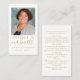 Esta sencilla tarjeta de oración conmemorativa se puede entregar como recuerdo en una Celebración de la Vida o servicio fúnebre o enviar como un tributo especial a aquellos que no pudieron asistir. Personalice esta tarjeta con una foto favorita, nombre, fecha (frente de la tarjeta) y su elección de oración o poema (detrás de la tarjeta). Fácil de personalizar.