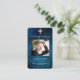 Un cielo azul oscuro como fondo, una falsa cruz de oro y espacio para tu foto. Personaliza y agrega nombre, fechas y tu texto y oración.
