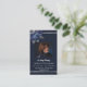 Un fondo azul oscuro, un marco falso plateado y espacio para tu foto. Decorado con flores azules. Personalice y agregue el nombre, las fechas y el texto.
