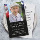 Tema de bandera de EE. UU. con tu foto favorita enmarcada. Se utiliza tipografía moderna y de escritura. En el reverso de la tarjeta la oración se puede personalizar.