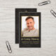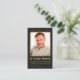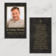 Esta elegante tarjeta fúnebre del personalizado cristiano conmemorativo muestra una foto bordeada por un falso marco dorado sobre un fondo de falso cuero negro y debajo de la foto con un moderno guión dorado con letras a mano dice "En la memoria amorosa" con un nombre, y fechas para personalizar . La parte posterior de la tarjeta tiene Salmo 23 que puede ser.dejado tal cual o personalizado a otra oración. Diseñado por ©Susan Coffey.