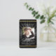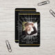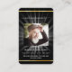 Fondo negro clásico, marco dorado falso y espacio para tu foto. Vigas de luz, detrás de la foto. Personaliza y agrega nombre, fechas y tu texto y oración.