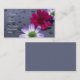 Tarjeta de perfil personal con flores y gotas de lluvia.