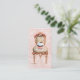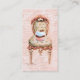 Pequeño y dulce quequito sentado en una silla victoriana de rosas rosas rosas. Perfecto para panaderías, fiestas de té, invitaciones y saludos. Usar para "guardar la fecha" y tarjetas de visita, tarjetas de perfil, etc.