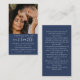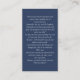 Dimensiones de la tarjeta de presentación: 3,5" x 2,0". Esta simple plantilla de tarjeta de oración conmemorativa sobre un fondo azul clásico puede ser dada como un aguijón en una Celebración de la Vida o servicio funerario o enviada como un tributo especial a los que no pudieron asistir. Personaliza esta tarjeta con las fotos favoritas de tus seres queridos y tu elección de oración o poema. Fácil de personalizar. Nuestras más sinceras condolencias a usted y a su familia durante este momento tan difícil.