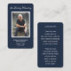 Una simple tarjeta conmemorativa en blanco y azul marino incluye "In Loving Memory" con la foto, nombre y fecha de nacimiento y muerte de su ser querido, y un poema o oración en la espalda. Hermoso por un tesoro de mantenimiento, servicios funerarios y celebración de la vida en memoria.