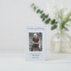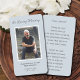 Una simple tarjeta conmemorativa azul pálido muestra "In Loving Memory" con la foto de tu ser querido, su nombre y fechas de nacimiento y muerte, y un poema o oración en la espalda. Hermoso por un tesoro de mantenimiento, servicios funerarios y celebración de la vida en memoria.