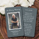 Una simple tarjeta conmemorativa azul de acero incluye "In Loving Memory" con la foto, el nombre y las fechas de nacimiento y muerte de tu ser querido, y un poema o oración en la espalda. Hermoso por un tesoro de mantenimiento, servicios funerarios y celebración de la vida en memoria.