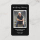 Una simple tarjeta conmemorativa en blanco y negro muestra "In Loving Memory" con la foto de tu ser querido, su nombre y fechas de nacimiento y muerte, y un poema o oración en la espalda. Hermoso por un tesoro de mantenimiento, servicios funerarios y celebración de la vida en memoria.