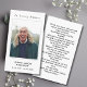 Dimensiones de la tarjeta de visita: 3.5" x 2.0" Esta simple tarjeta de plegaria conmemorativa puede ser entregada como keepsake en una celebración de la vida o servicio funerario o como tributo especial a los que no pudieron asistir. Personaliza esta tarjeta con una foto favorita, el nombre de tu ser querido, fechas y tu elección de oración o poema. Fácil de personalizar.