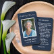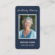 Una simple tarjeta conmemorativa en blanco y azul marino incluye "In Loving Memory" con la foto, nombre y fecha de nacimiento y muerte de su ser querido, y un poema o oración en la espalda. Hermoso por un tesoro de mantenimiento, servicios funerarios y celebración de la vida en memoria.