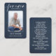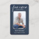 Una simple tarjeta conmemorativa muestra "Para siempre en nuestros corazones" con la foto, nombre y fecha de nacimiento-muerte de tu ser querido, y un poema o oración en la espalda está impreso en un patrón de denim azul. Hermoso por un tesoro de mantenimiento, servicios funerarios y celebración de la vida en memoria.