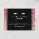 Coordina con las pestañas con la plantilla de tarjetas de visita de Purpurina rojo/bronce antes de las 12.00 horas. Una imagen de purpurina rojo y bronce llena el fondo de esta tarjeta de postcuidado del salón de exantema. Un par de pestañas blancas combinadas con tu nombre en la parte posterior es la marca perfecta para extensiones de pestañas, maquilladores, empresas cosméticas, barras de pestañas y más. Este diseño forma parte de una colección de materiales de marketing para ayudar a la marca de su negocio de belleza. Arte y diseño © 1201AM Design Studio | www.1201am.com