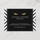 Coordina con las pestañas doradas con la plantilla de la tarjeta de presentación del patrón blanco y negro de Mod antes de las 12.01 horas. Un patrón óptico en blanco y negro crea interés visual como fondo en esta tarjeta de postcuidado de extensiones de latigazos de personalizable. Este diseño presenta pestañas en oro falso en el dorso combinado con tu nombre o nombre de negocio - marca perfecta para extensiones de eyelash, maquilladores, empresas cosméticas, barras de pestañas y más. © 1201AM CREATIVE