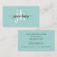 Tendencia hacia un estilo sencillo con atractivo de diseñador, este moderno diseño de tarjeta de visita incluye tu nombre escrito a mano en un guión caligráfico con colas principales y finales para añadir un aspecto elegante. Las iniciales y las últimas iniciales se presentan en una cara moderna de tipo "serif" industrial en blanco bajo la caligrafía con un popular fondo verde azulado acuático. ¡El resultado es usted! La plantilla de texto de la parte posterior de la tarjeta tiene espacio para toda la información que normalmente compartirías en tu tarjeta. Puede agregar o quitar cualquiera de este texto como desee. NOTA: Al personalizar su nombre en la parte delantera de la tarjeta, asegúrese de dejar los símbolos de la caja antes y después de su nombre. Esto es lo que hace que las preciosas colas se impriman antes y después de su nombre.