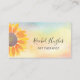 Tarjeta de presentación Art Therapist Sunflower Watercolor. Esta tarjeta de visita es luminosa y alegre y está decorada con un girasol amarillo sobre un fondo acuático. Personalízalo con tu nombre y detalles de contacto y para editarlo más adelante, haz clic en el enlace "personalizar más" y usa la herramienta de diseño para cambiar el estilo, los colores y el tamaño del texto. Porque creamos nuestra propia obra de arte no encontrarás esta imagen exacta de otros diseñadores. Acuarela original © Michele Davies.