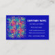 Una atractiva tarjeta de visita con un diseño abstracto rojo, amarillo y verde sobre un fondo azul real, con letras blancas. Listo para su personalizar con sus propios detalles.