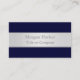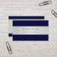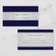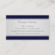 Tarjeta de presentación azul oscuro con una falsa etiqueta plateada.