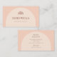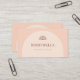 Tarjeta de visita de estilo bohemio con un color de fondo rosa suave y una forma de arco en un tono beige más claro. Toda la información de su empresa se puede personalizar, así como su logotipo.
