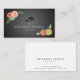 Esta bonita tarjeta de visita tiene fondo de pizarra/pizarra con una franja de rosa rosa rosa rosa, amapola roja, dalia gris y hojas verdes en la esquina superior izquierda, un piano vintage en el centro, y manzanas rojas y doradas, flores de manzana blanca y hojas verdes en la esquina inferior derecha. Personalízalo para tus necesidades. Perfecto para profesores de piano, profesores de música y cualquier profesional asociado de piano. Puedes encontrar productos coincidentes en mi tienda.