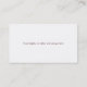 Esta tarjeta de visita puede utilizarse para una multitud de tipos de negocio: diseñador floral, consultor boda, spa/salón, etc. O puedes usarla como una "tarjeta mommy", una excelente manera de estar en contacto con nuevos amigos. Todo el texto se puede personalizar. Añade una etiqueta o resalta la dirección URL de tu sitio web en la parte posterior. Disponible en colores alternativos.