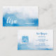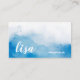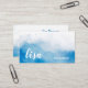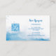 Tarjeta de presentación simple con un nombre grande en una fuente elegante manuscrita sobre un fondo de acuarela blanca azul. Plantillas para su nombre, título, número de teléfono, correo y dirección web, código QR para su sitio web o cuenta de redes sociales.
