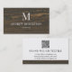 Tarjeta de presentación con código QR de monograma con patrón de roble de madera