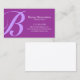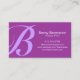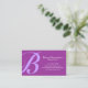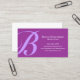 La inicial de su apellido aparece en una gran letra violeta de luz en negrita a la izquierda de esta tarjeta de visita sobre un fondo morado, mientras que los datos de contacto aparecen a la derecha. Este diseño de dos tonalidades es sencillo, minimalista, profesional y genérico, apto para casi cualquier tipo de negocio o industria.