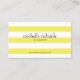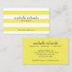 Las alegres rayas amarillas y blancas llaman la atención sobre su nombre y profesión en esta elegante plantilla de tarjetas de visita. Personalizar con su propia información y detalles. La información de contacto está al revés. Un diseño llamativo para una variedad de industrias. © 1201AM CREATIVE
