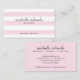Elegantes rayas rosas y blancas llaman la atención sobre tu nombre y profesión en esta moda de tarjetas de visita. Personalizar con su propia información y detalles. La información de contacto está al revés. Un diseño llamativo para una variedad de industrias. © 1201AM CREATIVE