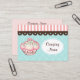 Una torta rosa sobre un fondo verde menta decora la parte delantera de esta carta de negocios de estilo retro. Utilice esta tarjeta de visita para una panadería, boutique, etc.................................................................................................................................................................................................................................................. Los diseños son de arte original.