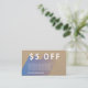 Personalizar esta moderna tarjeta de marketing de negocios con descuento. Esto es perfecto para un negocio de comercio electrónico como una boutique, una tienda Etsy o cualquier otra pequeña empresa. Incluye la frase "$5 OFF" y tiene un texto de personalizable para explicar más detalles de la oferta especial . El reverso tiene información de contacto de la compañía.