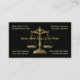 Un diseño de tarjeta de visita que muestra el símbolo legal utilizado en la práctica del derecho. Tarjeta perfecta para abogados y abogados de los bufetes de abogados. Esta tarjeta tiene un fondo negro con la escala de la justicia.