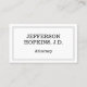 Este diseño profesional, limpio y básico de tarjetas de visita incluye un fondo blanco y un borde de doble línea con una línea discontinua entre ambos. Podría ser utilizado por un profesional como un abogado, abogado, abogado o notario público. El nombre, la profesión y los datos de contacto pueden ser personalizados.