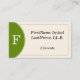 Este diseño elegante, moderno y contemporáneo de tarjetas de visita incluye una carta inicial, nombre, profesión e información de contacto que se puede personalizar. Podría ser utilizado por un profesional jurídico, como un abogado, un abogado de oficio, un asesor jurídico o un abogado.