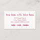 Esta tarjeta de visita para artistas de maquillaje rosa Magenta es fácil de personalizar en línea antes de realizar pedidos. En la parte delantera de la tarjeta aparece la palabra "maquillaje" en un elegante guion giratorio en un color magenta de cereza, sobre un fondo rosa claro de bonito junto con la personalización del nombre del maquillador. En la parte posterior de la tarjeta aparece la personalización en el texto en color de magenta cereza, para el nombre del maquillador o el nombre de la empresa o del salón, también para la dirección del salón y la dirección del sitio web (u otra redacción de su elección) y también para el número de teléfono de negocios. Si el suyo es un negocio móvil, el texto de la dirección del salón puede ser personalizado para mostrar las áreas cubiertas por ejemplo, o sus servicios o información similar.