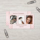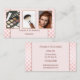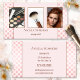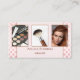 Una moderna tarjeta de visita con 3 fotos de su elección enmarcadas por un elegante diseño rosa con puntos de polka y un revestimiento de oro rosa. Una hermosa tarjeta de visita para un esteticista, un salón de uñas o un artista de maquillaje.