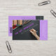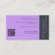 La Tarjeta de Negocio Artista Púrpura de Art Workshop muestra una actividad artística en una superficie negra con material artístico. Tiene una tipografía limpia, con un nombre de negocio morado anglado en el centro y la lista de servicios de negocios en el frente. El nombre comercial en la parte posterior está en una posición vertical de franja negra. Además, los detalles del negocio están en un fondo morado más el código QR. Todo el concepto es contemporáneo y lúdico lo hace apasionante para una tarjeta de visita de un artista.