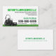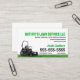Tarjeta de negocios de servicio de césped. con una cortadora de césped negra de color cero.