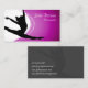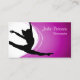 Una silueta de una bailarina que da un salto es la imagen principal a la izquierda de este diseño, mientras que un gradiente de fuschia se mezcla desde el extremo derecho hasta el centro de la tarjeta, terminando en una semiesfera. Este diseño es especialmente adecuado para bailarines o negocios relacionados con la danza de la industria del entretenimiento.